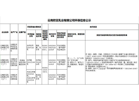 云南歐亞乳業有限公司子公司牧場環保信息公示